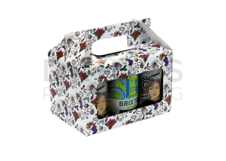 Our Christmas Can Gift Packs are available in either 3, 4 or 6 can packs. See also Transit Packs. They have a window front and back making an attractive display. There is a sturdy carry handle on top. They are made from a quality craft board featuring a generic festive design. MOQ = 50